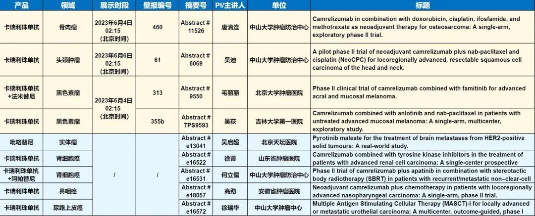 此外,在头颈肿瘤、黑色素瘤、骨肉瘤、鼻咽癌、肾细胞癌、尿路上皮癌等多个领域,卡瑞利珠单抗、吡咯替尼等产品相关研究一共入选了4项壁报展示和5项线上发表,彰显了尊龙凯时-人生就是搏医药强大的自主研发综合实力。