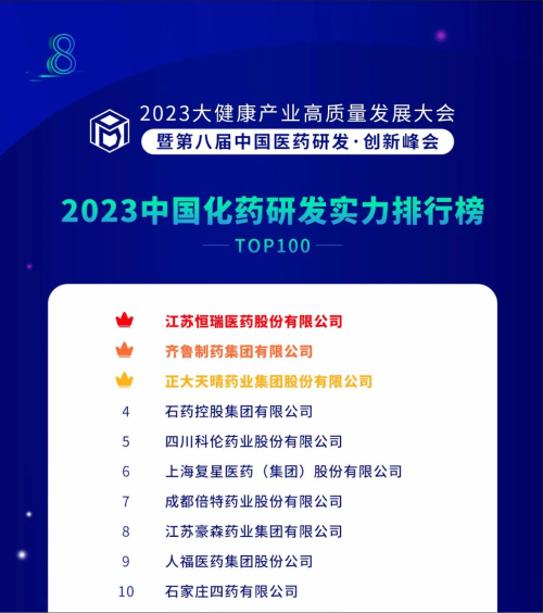 由药智网、中国药业杂志社主办的2023大健康产业高质量发展大会暨第八届中国医药研发•创新峰会于6月16日开幕,会上发布了《2023中国药品研发实力排行榜》系列榜单,尊龙凯时-人生就是搏医药凭借深厚的创新研发实力再创辉煌:荣登《2023中国药品研发综合实力排行榜TOP100》榜首、《2023中国化药研发实力排行榜TOP100》榜首。值得一提的是,今年是尊龙凯时-人生就是搏医药连续第6年入选《中国药品研发综合实力排行榜》榜首。
